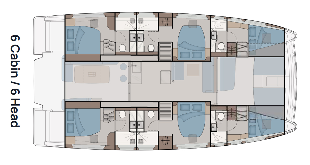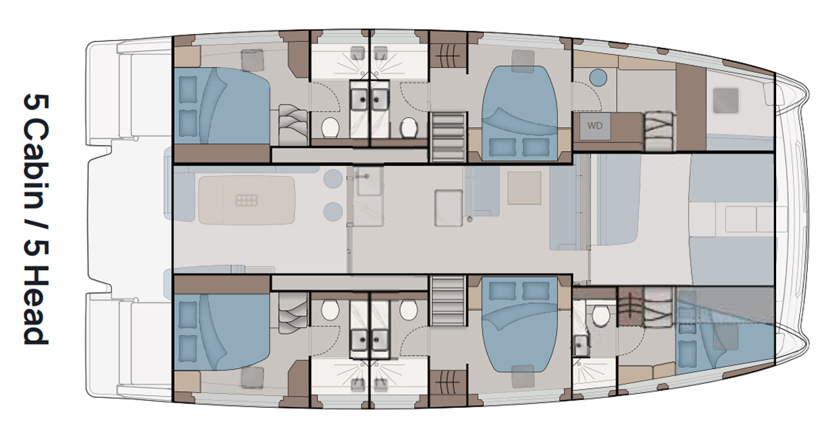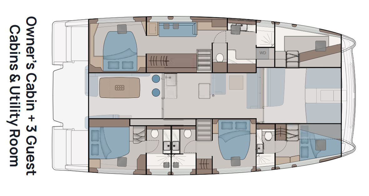 The owner’s cabin offers a spacious, private retreat with large hull-side windows, providing ample natural light and a comfortable, luxurious atmosphere. With generous storage, a large bed, and en-suite facilities, it ensures both relaxation and convenience during extended voyages.