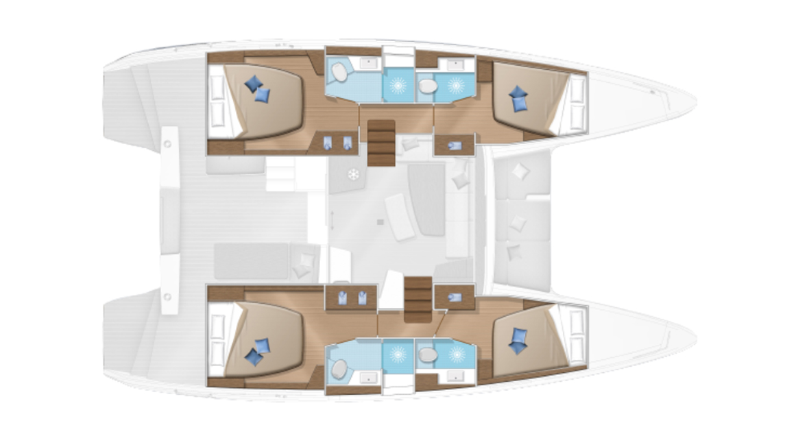 Echoing her exterior lines, the interior design, by Nauta Design, combines elegance and softness with contemporary woodwork. Light, comfort, privacy… the style of the Lagoon 42 offers a wealth of benefits to share.